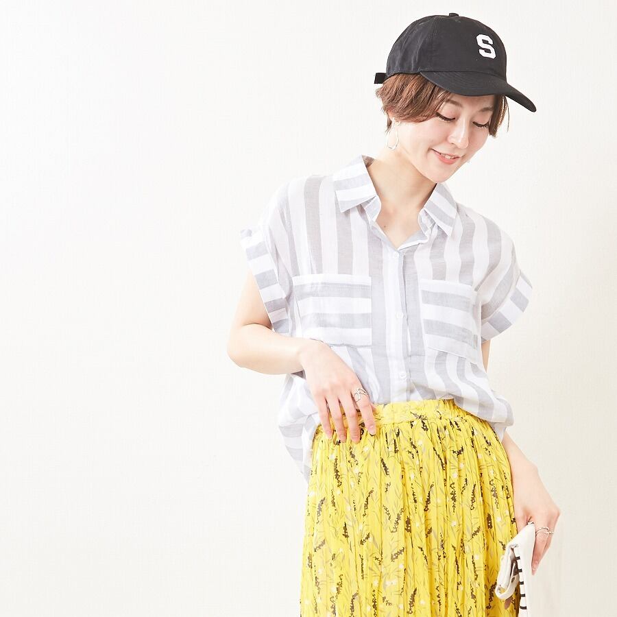綿100%さらっとした フレンチスリーブシャツ